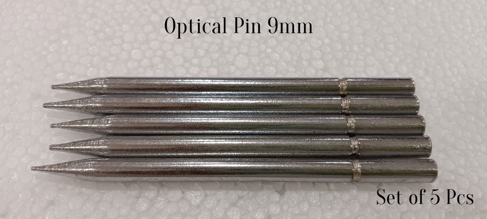 Size: this pin is 9mm in diameter. It’s often a thin, straight, and sharp-ended pin that can be easily inserted into a board or optical setup. The top end may have a small visible marking for easier alignment.