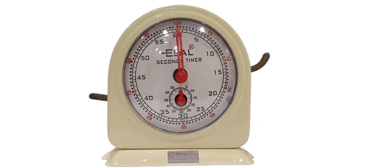 SPECIFICATION: :Stop Clock is a triple action timer (start-stop-fly back) that records time during the experimentation of metal powder coated body with two levers a large 100 mm dia dial from 0 to 60 seconds. It has a hand precision spring movement and large start and reset triggers for operation. Smith type, encased in a metal case with fly-back action. At the right side of the case is the stop and start lever, the operation of which enables a timer to be started and stopped as desired. On the other side of the case is a press lever that returns the hands to zero, after the mechanism has been stopped by means of a stop lever. A subsidiary dial recording 0 to 60 minutes is provided below the secondhand.